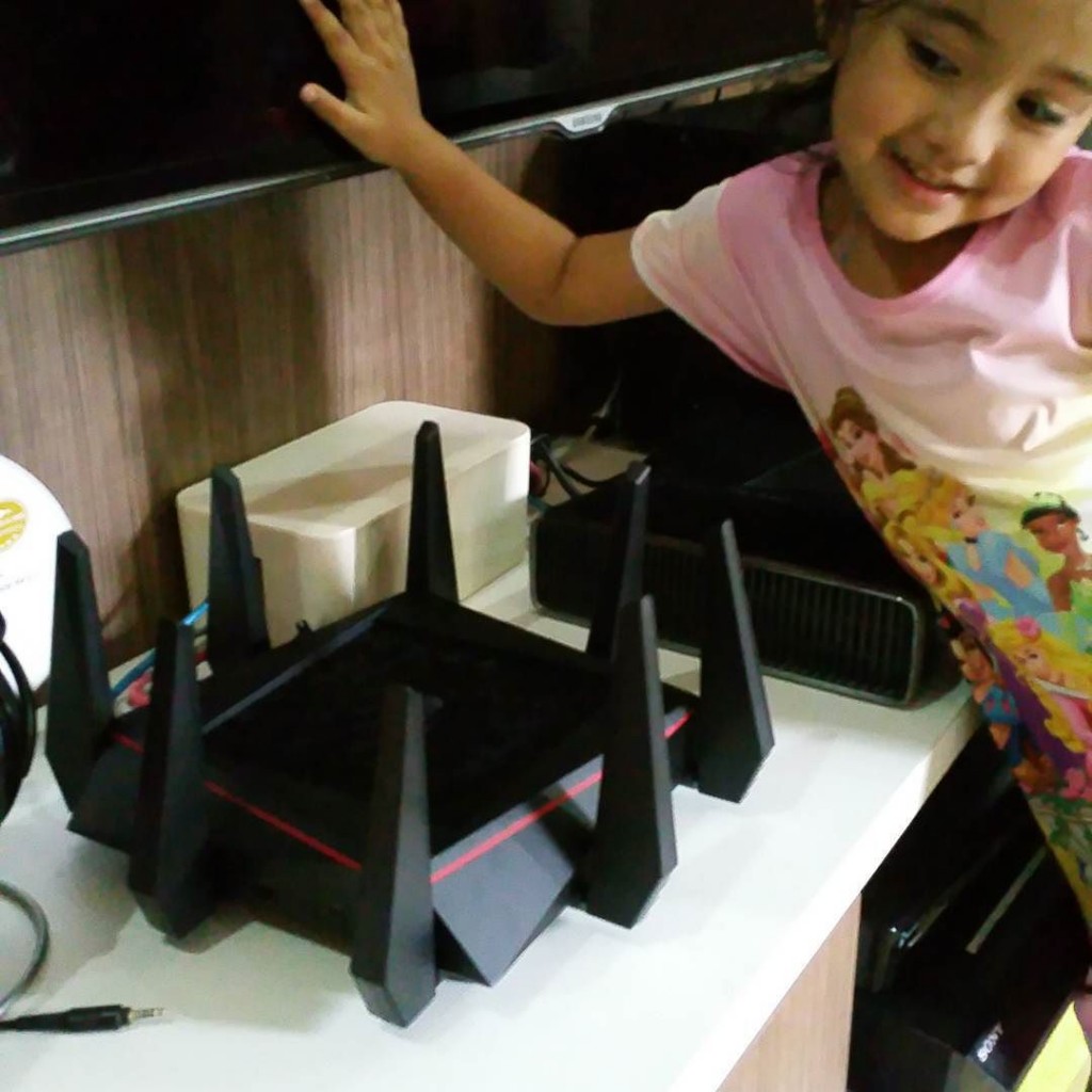 Which brings us back to the RT-AC5300. My current ISP provided router was decent, but it could not support OpenVPN, so out it went. I looked at the latest routers, with Asus being the first (and only) port of call. I’ve had great experiences with Asus routers. I’ve owned the RT-N56u and the RT-N66u (which is still in use as a wifi extender), and love the GUI and the features of Asus WRT (which is a fork of DD-WRT). I particularly enjoy using Merlin’s firmware.So when I read that the RT-AC5300 was the newest router from Asus, I knew I had to get my hands on it (being the gadget-freak that I am). My wife took a little convincing, but now, this monster is sitting on my console: